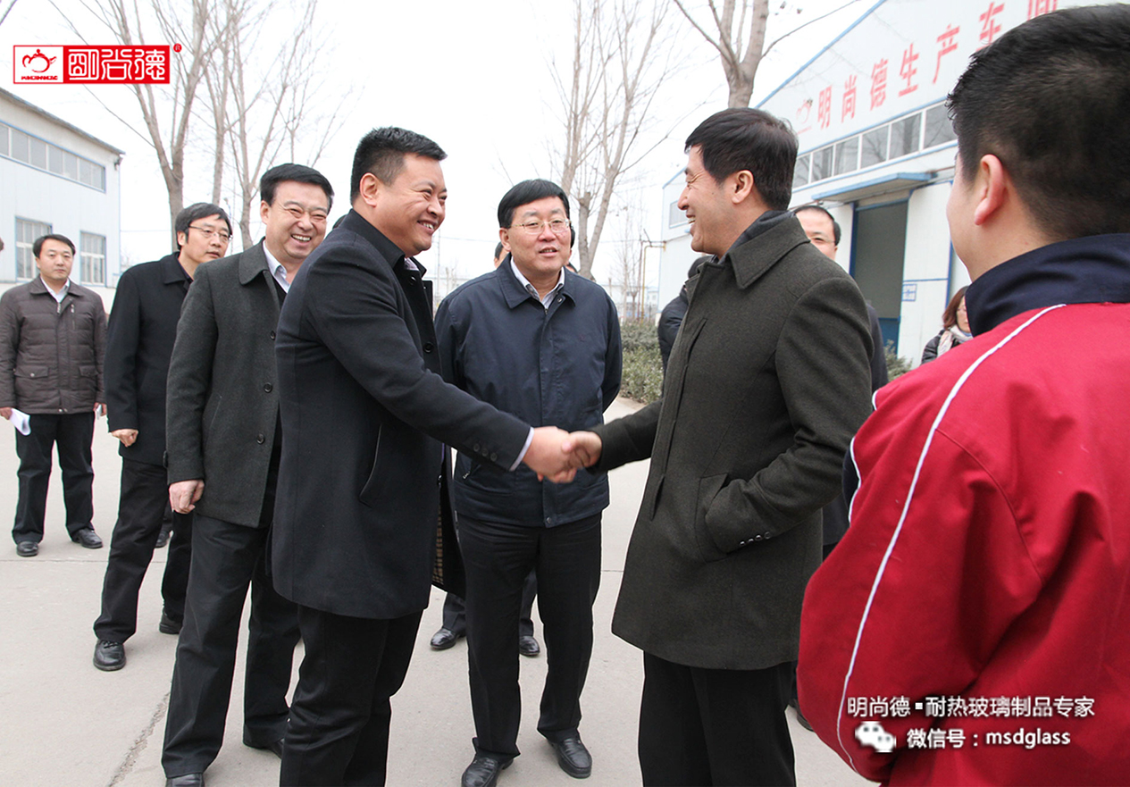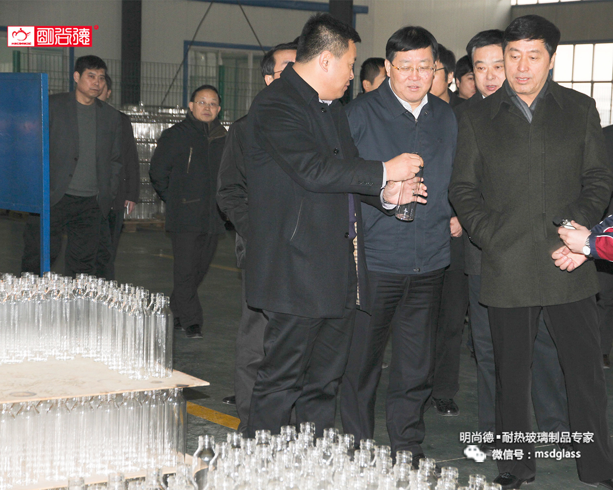 张杰辉省长对明尚德企业所取得的成绩给予肯定,并对明尚德企业的发展寄予了厚望,希望明尚德企业再创辉煌并祝福明尚德企业在2015年8月份顺利在新三板市场挂牌上市。最后,公司董事长高明亮对张杰辉省长等一行领导的到来表示欢迎,对河北省政府长期以来的关心和支持表示感谢,并表示在当前的发展机遇下将带领公司全体员工把耐热玻璃产业做大做强,不辜负领导的要求和期望。要以传统手工艺为基础,把事情做好,将产品做到更优。