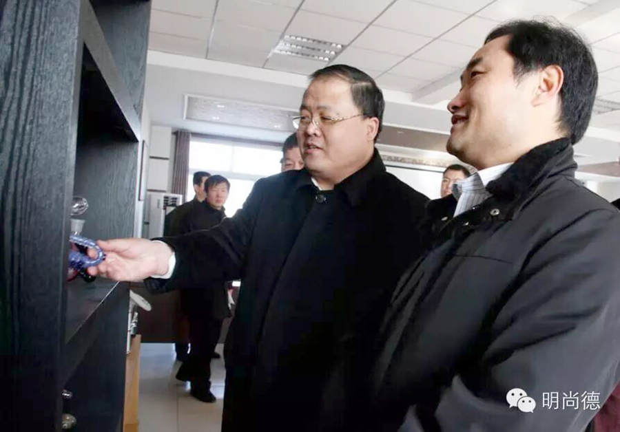 2016年1月19日,沧州市副市长吴燕同志一行人来到瀛州开发区明尚德玻璃科技股份有限公司考察,市领导尹卫江陪同调研。
