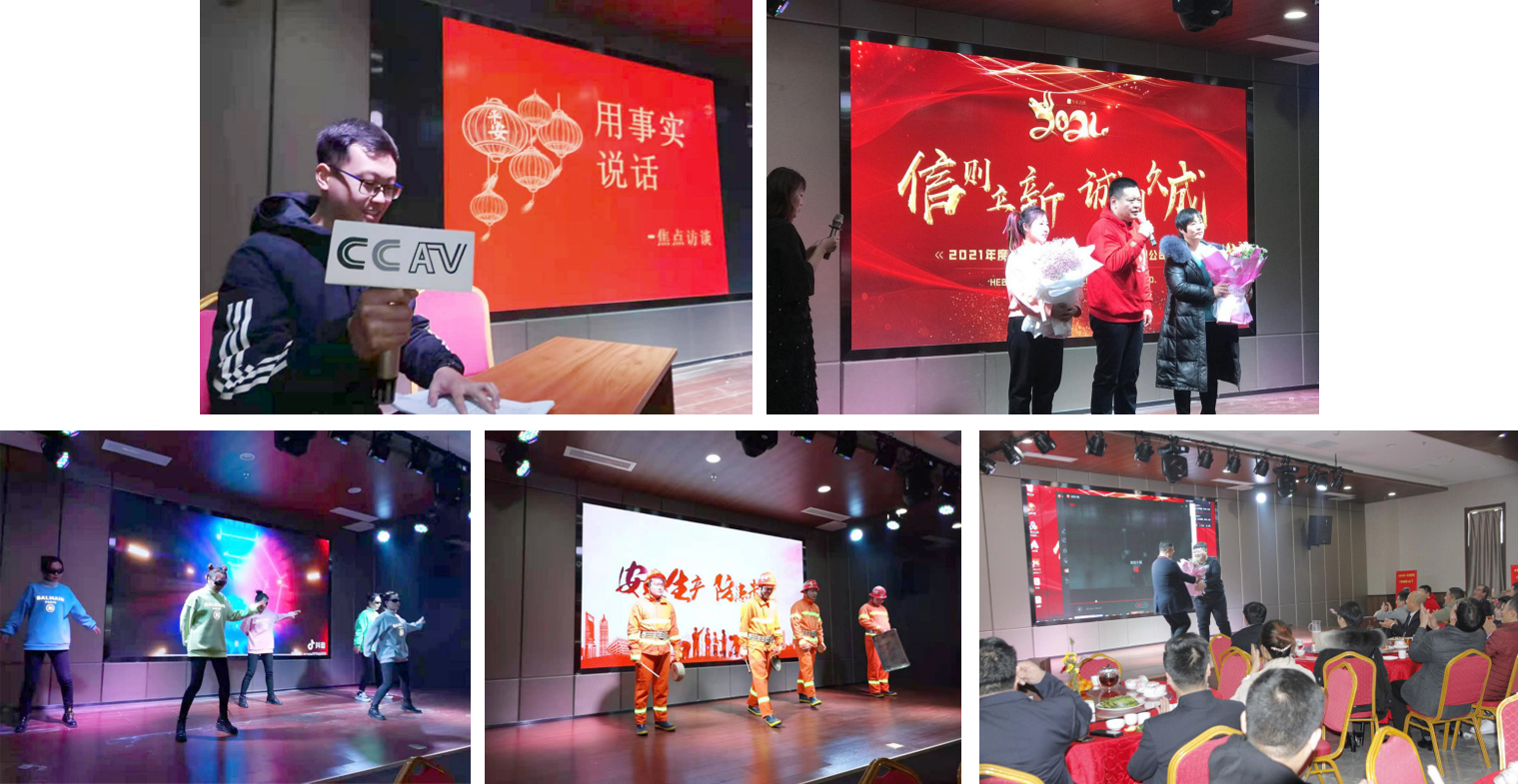 年会节目丰富,看大家的笑容就可以感受到心里的那份喜悦,或载歌载舞,或自编自导自演的贴切演出,或丰富报道一线的小品,一场场热闹的游戏,一次次惊喜的红包,将晚会推向一个又一个高潮。大家尽情的舞,尽情的唱,欢乐时展颜,感动时带泪。圆圆的餐桌像一个又一个拥抱,将员工们呵护在明尚德的羽翼之下。